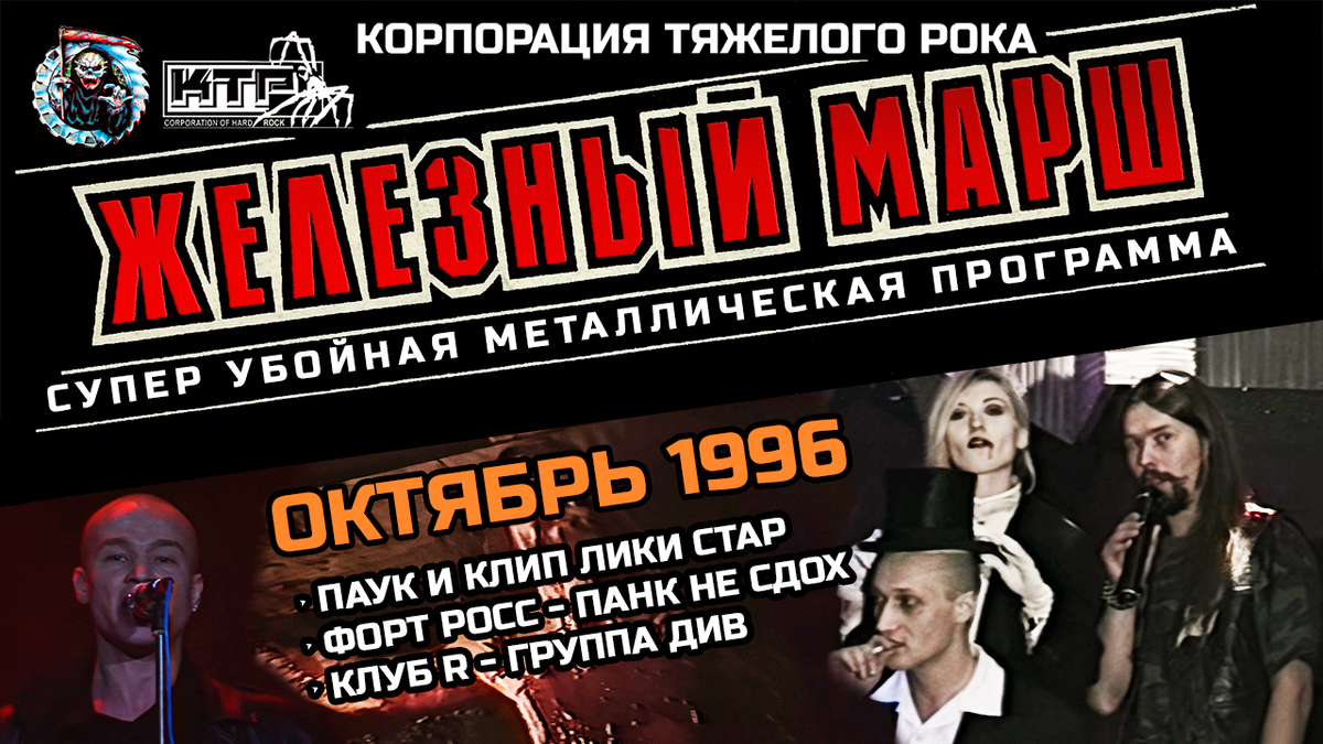 Корпорация Тяжелого Рока представляет вниманию публики - очередной архивный выпуск супер-мега-телешоу ЖЕЛЕЗНЫЙ МАРШ, датированный октябрем 1996 года.