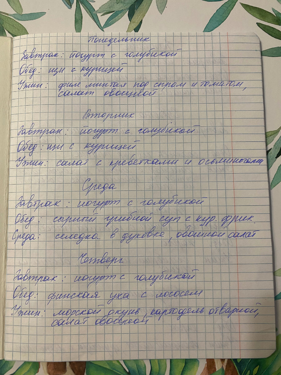 Изначально было составлено приблизительное меню, которого мы придерживались последние две недели. Придерживались - громко сказано - плюс минус трамвайная остановка.