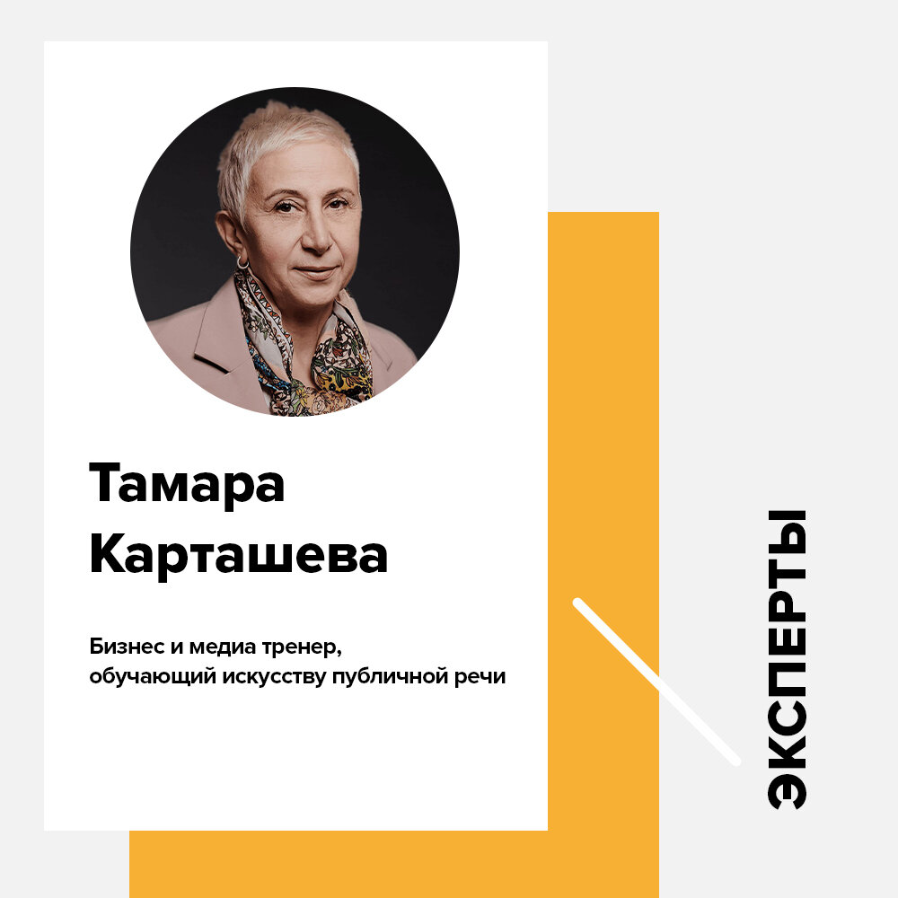 Знакомьтесь, Тамара Карташева ― бизнес- и медиатренер, репортер с большим опытом работы в СМИ, поэтому знает толк в искусстве публичной речи.