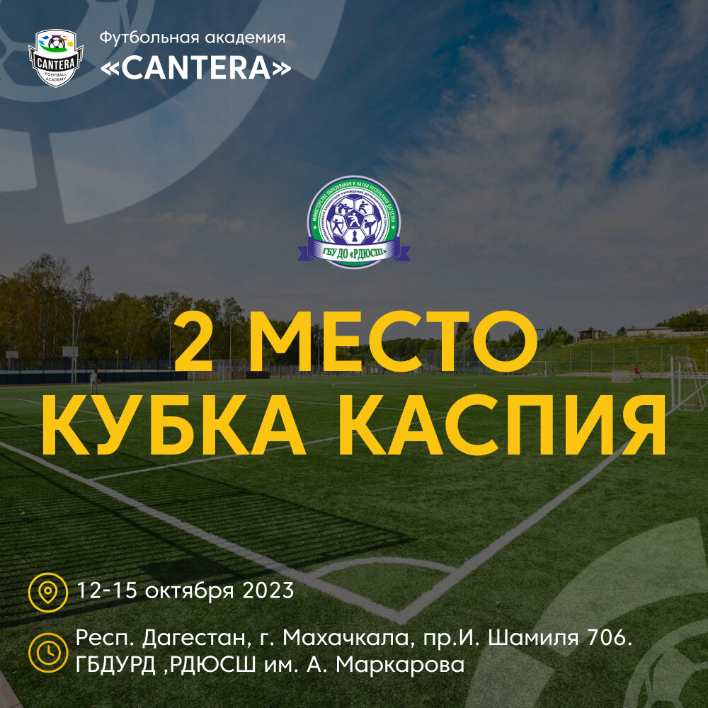 Как вы знаете, наши парни регулярно участвуют в футбольных турнирах и соревнованиях различного статуса. И, так уж получается, что они постоянно занимают призовые места, а также побеждают в индивидуальных номинациях. Этот сезон, мы уверены, не станет исключением, но турнирный список ожидают изменения. Помимо ранее анонсированного Первенства Москвы, наша команда 2014 г.р. отправилась в живописнейший Дагестан для участия в «Кубке Каспия» - ежегодного детского турнира, посвященного братьям Шихалиевым. Соревнование проходило с 12 по 15 октября в городе Махачкала на полях РДЮСШ им. Маркарова. Наша команда с легкостью миновала групповую стадию, а уже после и полуфинал турнира. Но в напряженном финале «Cantera» 2014 г.р., к сожалению, уступила команде РДЮСШ 2014 со счетом 1:4. Тем не менее серебро - это, безусловно, отличный результат. Уезжаем из Дагестана на мажорной ноте! Кроме серебряных медалей турнира, увозим в Москву целый ряд индивидуальных наград: - Лучший игрок команды - Артём Ренкас;