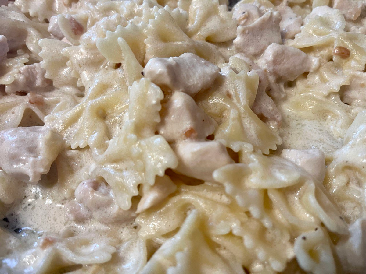 Всем доброго дня! Макароны в нашей семье очень популярны, второй гарнир после картофеля. Если у вас в шкафу оказалась пачка макарон, сейчас расскажу как приготовить очень вкусное блюдо, которое оценит вся семья. Итак, приступим! Для приготовления понадобится: филе курицы или индейки - 400 г. макароны - 300 г. сыр твердый - 100 г. чеснок - 5 зубчиков масло растительное - 2 ст.л. сметана - 2 ст.л. Соль, специи, зелень - по вкусу Для начала нарезаем мясо небольшими кубиками и обжариваем на масле. Параллельно ставим вариться макароны Нарезаем чеснок и отправляем его к мясу, немного солим и обжариваем 5-7 минут Натираем на крупной терке сыр и смешиваем его со сметаной Когда макароны сварятся, сливаем воду и выкладываем их к мясу Перемешиваем и добавляем сыр со сметаной Еще раз перемешиваем, накрываем крышкой и оставляем на медленном огне на 7-10 минут, главное, чтобы не начало пригорать. Если чувствуете, что блюдо готово, смело снимайте с плиты. Получается очень нежное блюдо. Можно посыпат