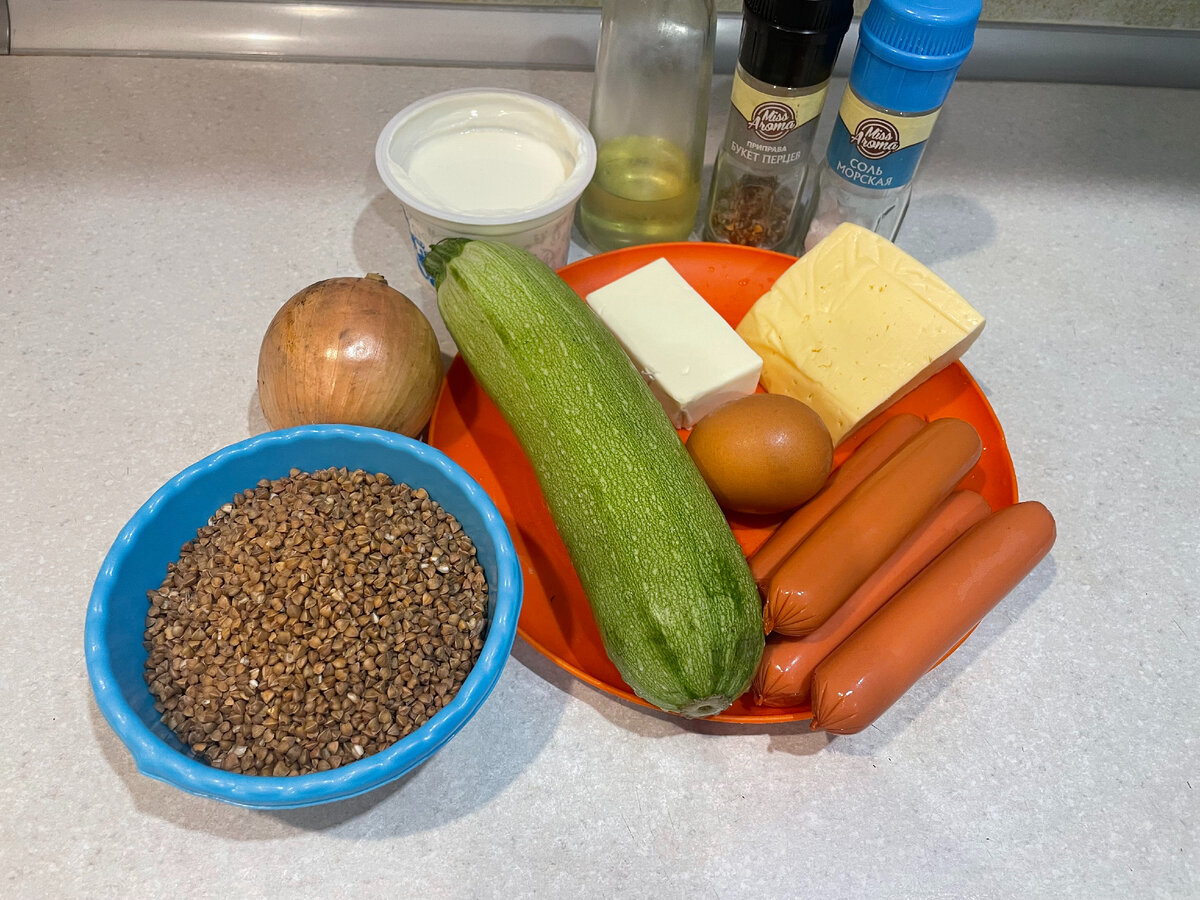 Запеканка из гречки с колбасой и кабачками. Отличный обед или ужин