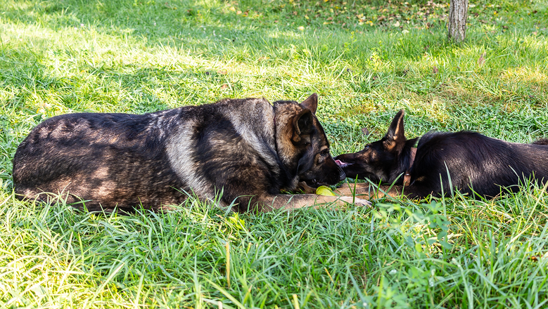 Овчарка поддержала своего друга-пса с повреждением мозга