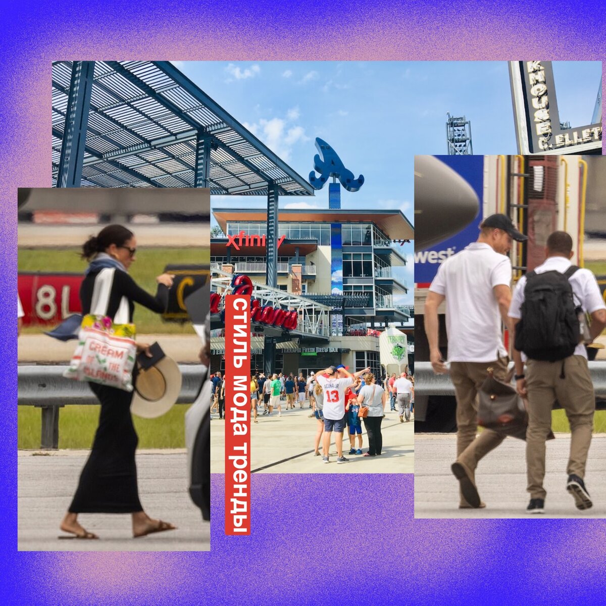 Итак, после странного фото «с острова миллиардеров», британское издание Daily mail смогло обнаружить прилетевших сейчас на частном джете принца и его герцогиню. Эксклюзивные фотографии DailyMail показывают, как пара высаживается из самолета и покидает взлетно-посадочную полосу, где их встретили сотрудники и США. Агенты таможенного и пограничного патруля,- пишет популярный таблоид. Фото довольно размыты, но мы видим у Меган синий шарф черное трикотажное платье, неизменные шлепки на самых красивых ступнях мира и странную сумку, которую оценят зуммеры, но которая пока мне напоминает винтажную коллекцию Y3. У меня пока пара вопросов: За что Атланте такое счастье? Чей джет возит наше сокровище туда-сюда? Если они и правда отдыхали в Soho house в эти выходные, видна ли и тут волосатая рука Маркуса?