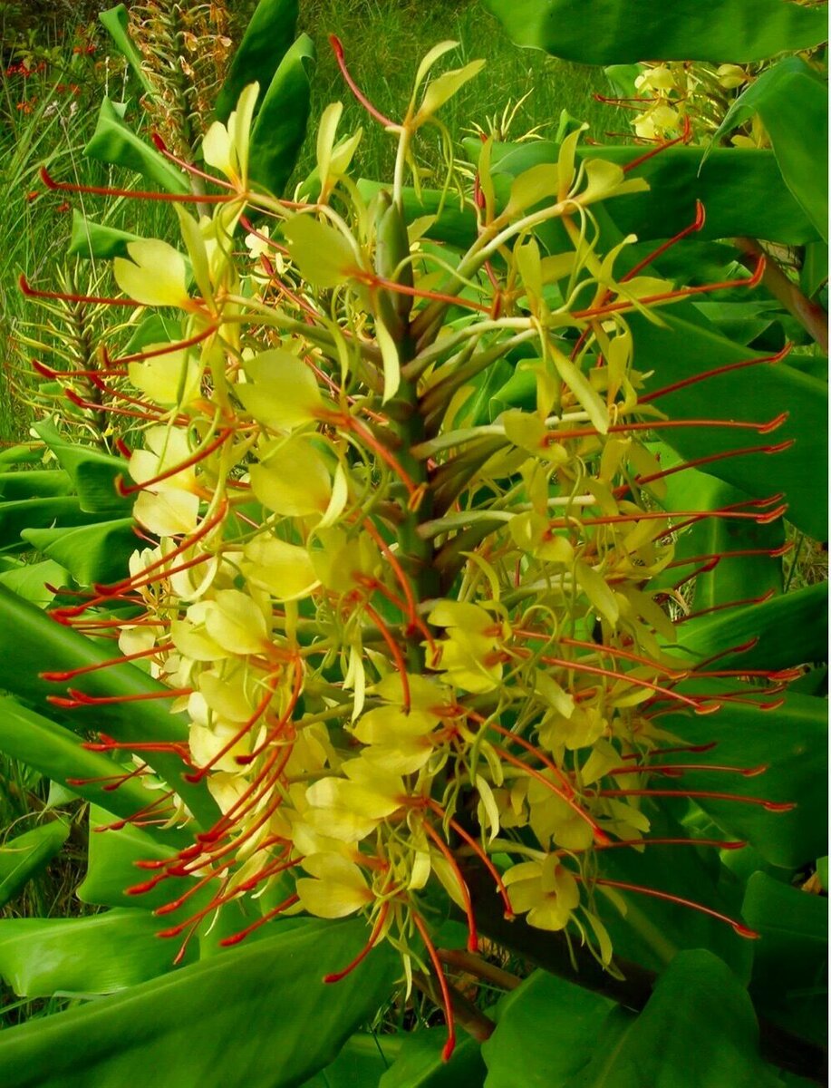 Гедихиумы (Hedychium) — представители семейства Имбирные (Zingiberaceae). Народные имена гедихиума ярко иллюстрируют красоту этой культуры. Пряная лилия, яванский имбирь, цветок-бабочка, имбирь Кахили, имбирь-бабочка, имбирная лилия, цветок-гирлянда – так разнообразно называют это редкое и очень ценное растение. Практически все гедихиумы очень схожи между собой внешне, отличаясь только по цветовой гамме и особенностям строения соцветий. Они легко узнаются на фоне других тропических звезд.