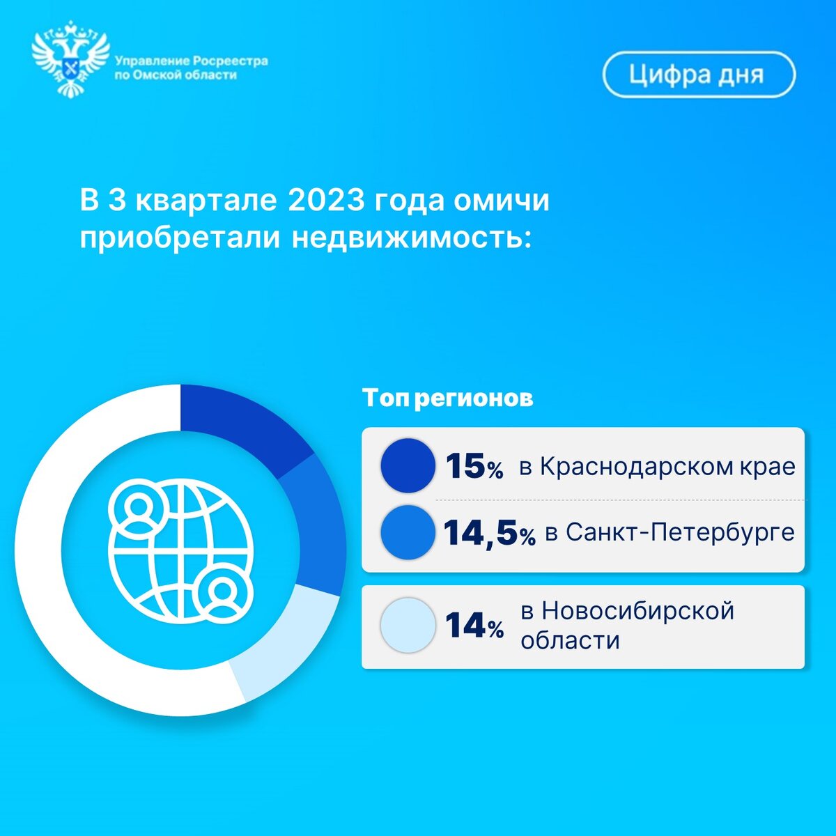 В сравнении со IIкварталом 2023 года спрос на услугу вырос почти на 69 %: с июля по сентябрь текущего года омским Росреестром принято 755 заявлений о дистанционном проведении государственной регистрации права (во II квартале – 447). Стоит отметить, что на протяжении всего этого года омичи демонстрируют завидное постоянство в выборе других регионов для покупки недвижимости. Как и раньше, тройка лидеров прежняя, но места распределились чуть иначе: на 1 месте – Краснодарский край (принято 51 заявление), что составляет 15 % от общего количества экстерриториальных заявлений. На 2 месте – Санкт-Петербург (принято 50 заявлений), или 14,5 %, на 3 месте – Новосибирская область (49 заявлений), что составляет 14 % от общего количества принятых экстерриториальных заявлений на регистрацию прав и кадастровому учету недвижимости. Немного отстают город Москва с Московской областью и Красноярский край. «В целом, интерес омичей к Сибирскому федеральному округу снизился на 6 % в пользу южных регионов наш