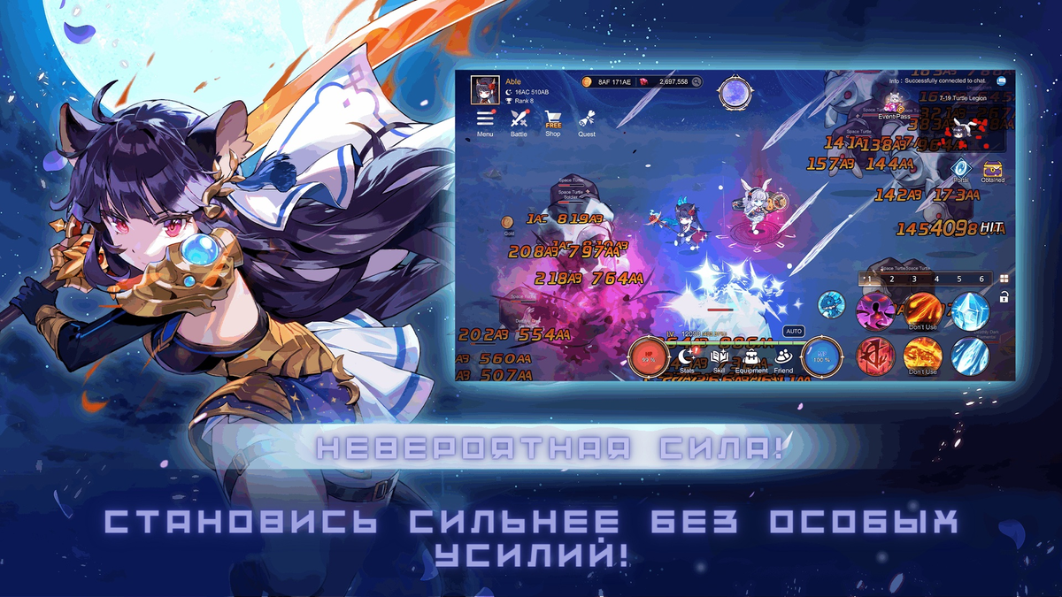 Используйте баннер игры, чтобы получить оружие, навыки и прочие предметы. При каждом использовании увеличивается вероятность того, что в будущем вы получите более качественные вещи, что позволит вам успешнее двигаться вперед и получать ещё больше наград!