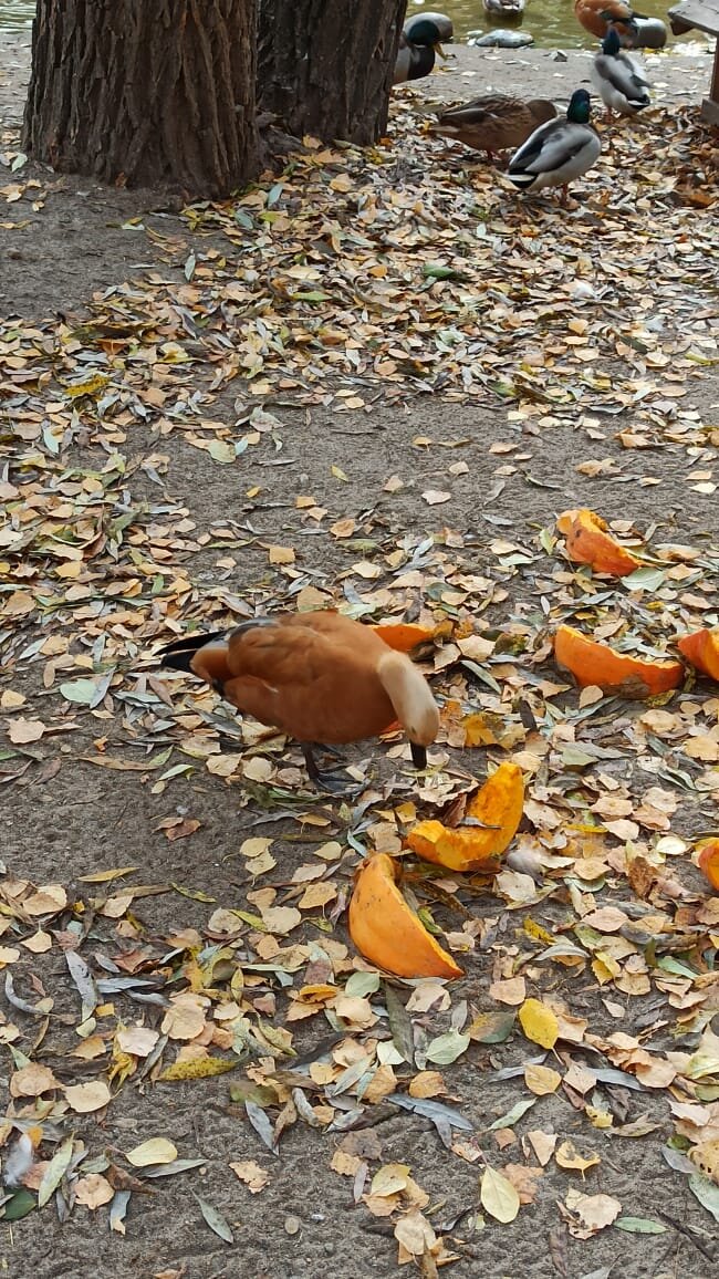 Думаю мои хорошие, добрые друзья из Новосибирска ловили те самые последние, яркие дни конца сентября-начала октября, когда солнце и ясное небо так и манили на природу. И, уступая такой притягательной "приманке", друзья направились в зоопарк. Скажем так, они мне просто скинули фото с этого путешествия. И они - фотографии - просто замечательные. А так как мне разрешили их выложить, то я делюсь с вами тоже. Глядя на следующее фото я даже не сразу поняла, что это красавица-утка рассматривает подношения-тыквы. Увидела только верхних уток. Зоопарк в Новосибирске был основан где-то в 1933 году. Дата основания весьма приблизительна, к сожалению. Но и в википедии указан этот год, а значит будем считать от него.
