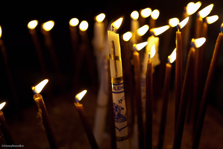 А вот и один из древнейших непрерывно действующих храмов в мире - базилика Рождества Христова. Чтобы попасть внутрь, нужно пройти через Врата Смирения. То есть, согнувшись в три погибели. Мне с моим ростом пришлось потрудиться. Главный центральный (один из пяти) неф. По бокам ряды колонн. Впереди главная часть храма. Повсюду развешаны лампады разных стилей и ф
