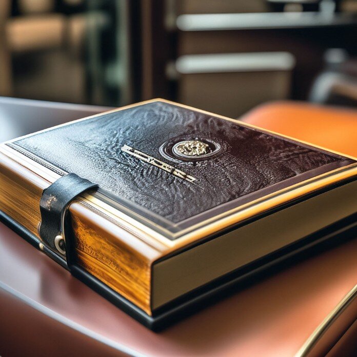 На том месте, где мы ожидали увидеть книгу, стоял блокнот в кожаном, тисненном переплете. По цвету и формату он вписывался в книжный ряд и ничем не привлекал к себе внимания.