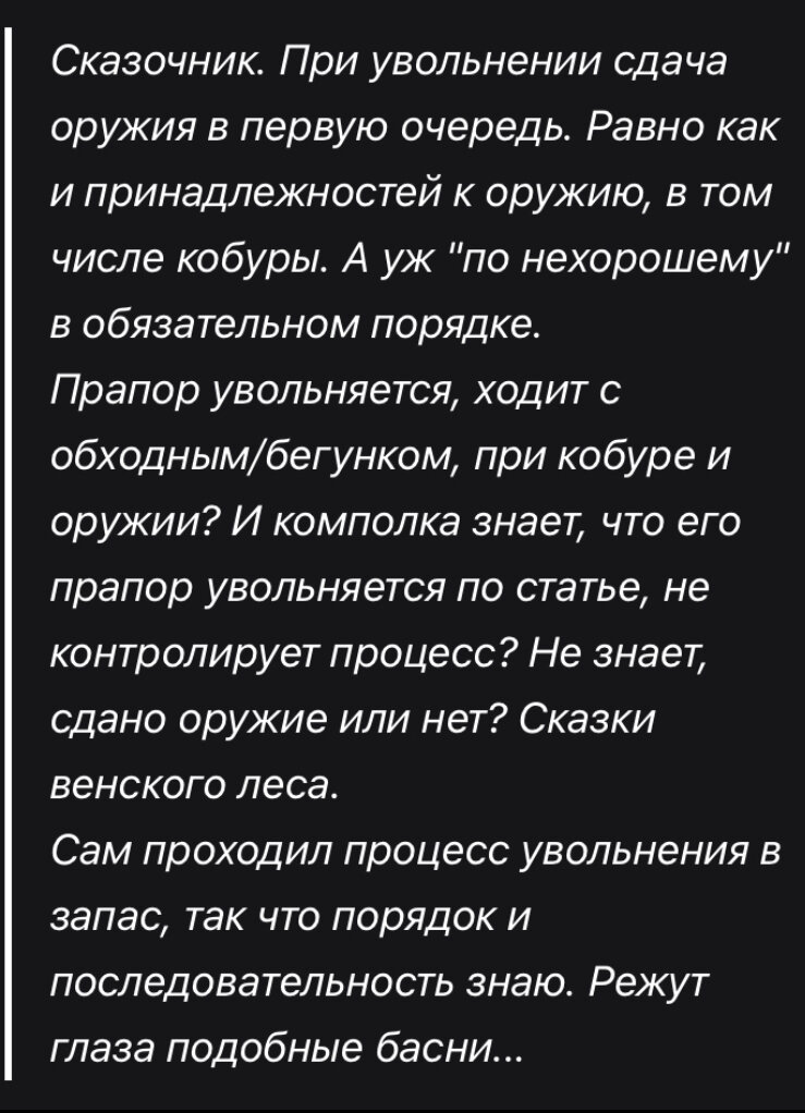 PS: Добавлю про реплику о кобуре прапорщика, который увольнялся. Да, у многих кадровых военных были свои личные кобуры. Ведь на складе РАВ могут выдать с ПМ такую, что без слез на неё не взглянешь. У меня было за службу своих штуки три.