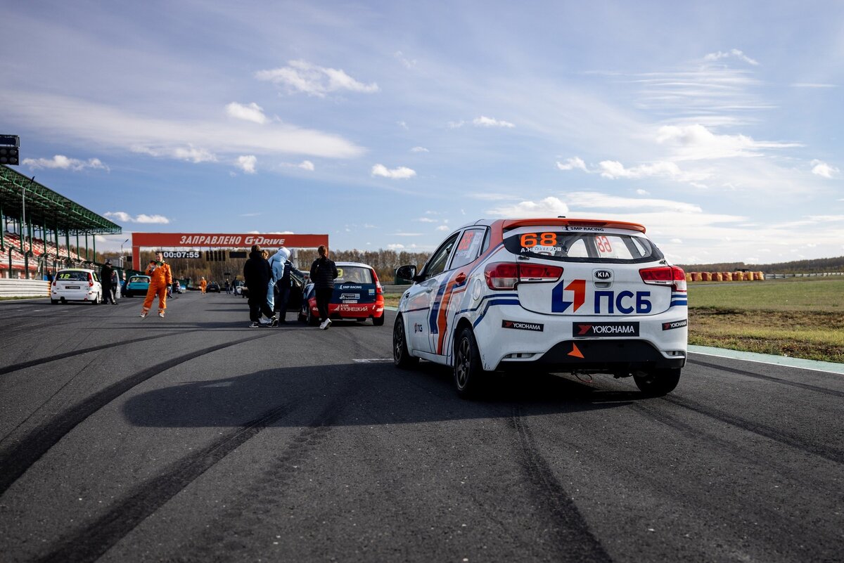 Сразу после старта стало понятно, что Solaris Сергея, что называется, не едет, да и бирюзовая Rio с номером 33 не так активно пронизывала пелотон, как ожидали от Дударева. Зато Перешивалов уже во втором повороте обошел Елисееву, вскоре то же самое сделали Николай Серебряков (номер 5) и Даниил Минаков (71) на Ладах. Назад откатился и Вадим Пичугин (Kia Rio, 70), стартовавший третьим, – не исключено, что это объясняется большей свободой в выборе покрышек в А5723, ведь покрытие трека было холодным, несмотря на солнечное утро. Мы уже видели, как в неблагоприятных погодных условиях пилоты S1600 нередко уступают коллегам на теоретически более слабых и медленных машинах. Впрочем, и Лады могут вылетать с трассы, что продемонстрировал лидер гонки: где-то в середине заезда Перешивалов основательно застрял в гравии. К тому моменту из борьбы также выбыли Александр Винопал из S1600 и упомянутый Щеголев, окончательно лишившийся надежды на лидерство в чемпионате.