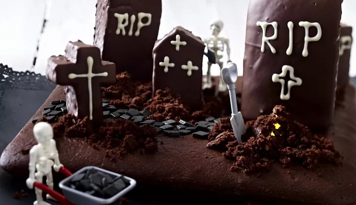 Этот похоронный торт точно добавит юмора и оригинальности к вашему Хэллоуину, и гости будут в восторге от его внешнего вида и вкуса.