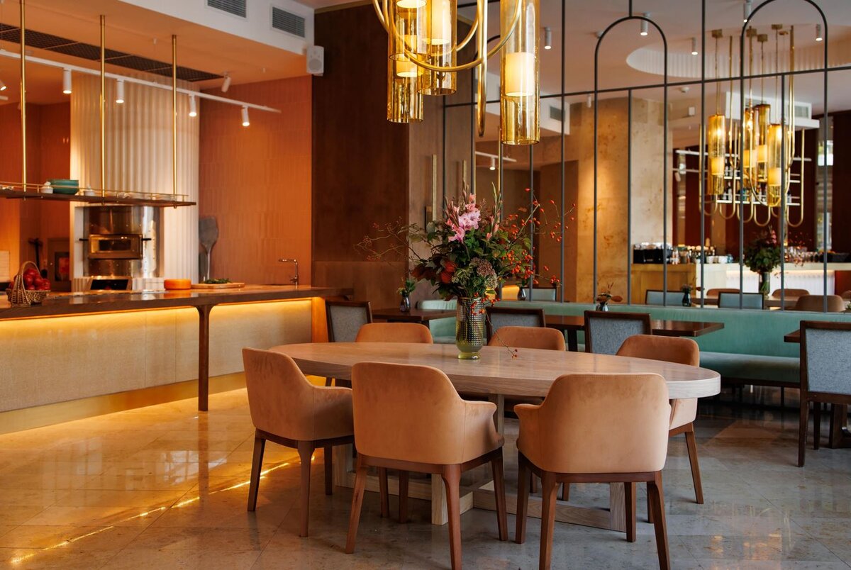 Шеф-повар Родион Садовский предлагает классику в новом исполнении. Еда выглядит не менее нарядно, чем все вокруг. Хитами уже называют ризотто с белыми грибами и трюфелем, утиную грудку с копченым бататом и сибас. Из приятного: есть дровяная печь и завтраки, к которым подают бокал игристого.