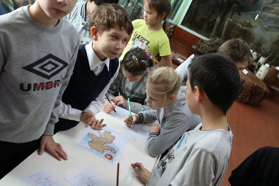 Юные посетители, выполняя задания, отправились в путешествие по основной экспозиции музея.