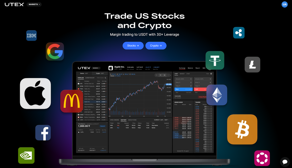 UTEX действительно дают классную возможность: без всяких ограничений вы можете инвестировать в акции за USDT, в том числе в акции американских компаний с плечом x30. Это идеальный вариант для трейдеров.