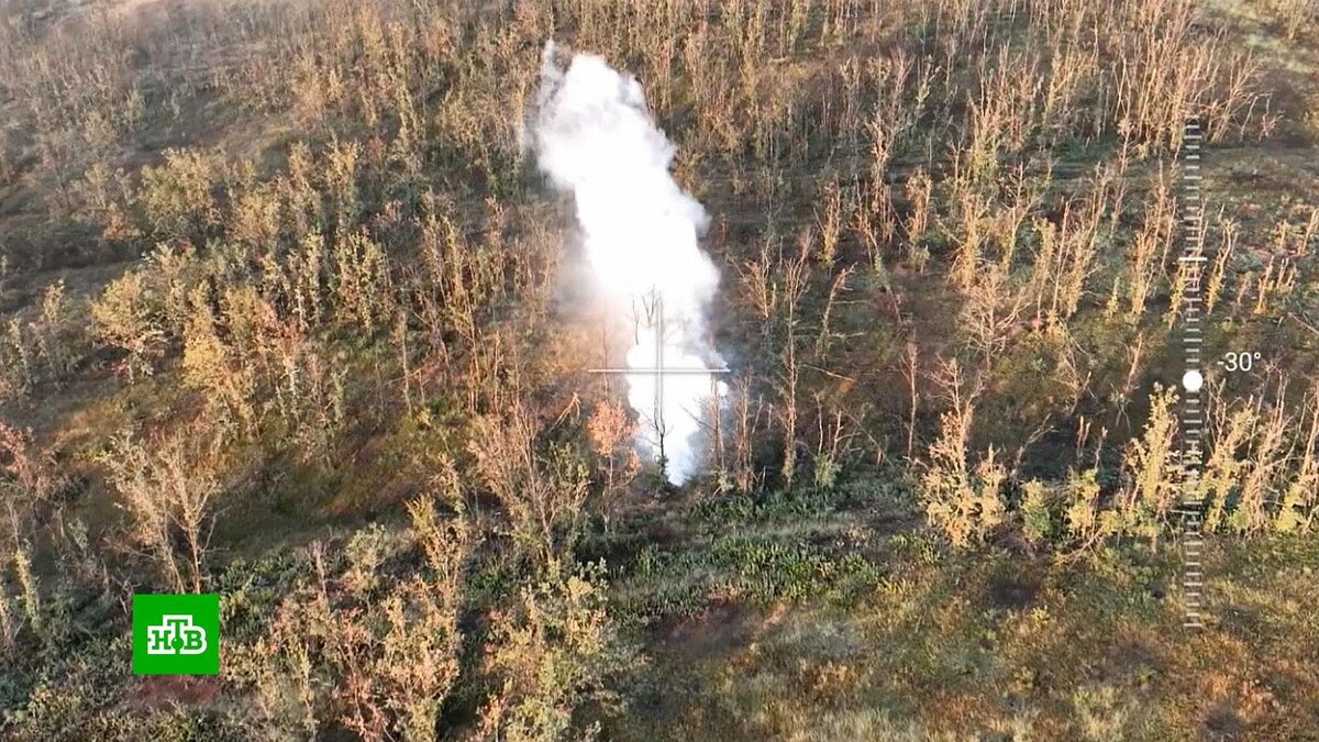 [ Смотреть видео на сайте НТВ ] Минобороны показало кадры боевой работы штурмовой группы ВДВ в районе Артёмовска (украинское название — Бахмут) на Донецком направлении спецоперации. Ивановские десантники ликвидируют украинские формирования, которые пытаются обойти город с севера. После очередной неудачной попытки прорыва российской обороны остатки подразделения ВСУ укрылись в лесополосе. Там их окопы вскрыла воздушная разведка, и после того, как удар нанесла артиллерия, в атаку с нескольких направлений пошли бойцы подразделения «Шторм». В ходе скоротечного боя десантники смогли закрепиться на позициях ВСУ, несколько украинских военнослужащих были взяты в плен. Бойцы Центрального военного округа успешно поразили скопление украинской пехоты в укрепленном районе. Задачу уничтожить цель получил экипаж новейшей тяжелой огнеметной системы ТОС-2 «Тосочка». Эта установка ведет стрельбу мощными термобарическими снарядами повышенной дальности. Еще одно отличие боевой машины — колесная база грузо