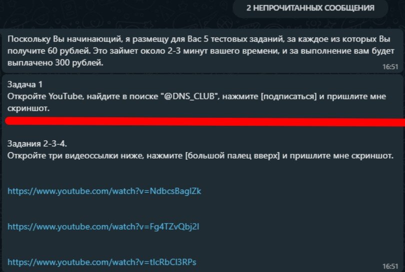 В сети в последнее время стало появляться все больше лохотронов, а, хотя, когда их было мало? Вот недавно мошенники по месседжерам (Телеграм и Ватсапп) стали отправлять предложения заработать на накрутке рейтинга товаров в магазине DNS. Это "реинкарнация" лохотрона с накруткой отзывов на Вайлдберрис, я писала об этом разводе неоднократно, к примеру, тут. Суть развода К потенциальной жертве в месседжер "стучится" человек, как правило, девушка и представляется представителем магазина. Она же утверждает, что магазину нужны ваши лайки. Первое, что нужно сделать - лайкнуть несколько видео на представленном ими Ютуб канале, сделать скрины, а после прислать скриншоты этому самому представителю. За выполненную работу предлагают 300-500 рублей. Самое занимательное, что эти деньги на самом деле платят. Просят у вас платежные данные и, переводят деньги, но это все, что вы от мошенников получите. Далее начинается развод. Когда начинается обман? После того, как вы получите первую сумму, ваше довери