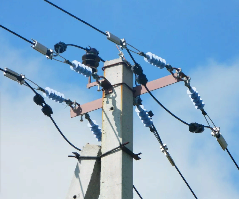 Ограничители перенапряжений являются более современными защитными аппаратами от перенапряжений по сравнению с разрядниками. Кроме того, пока только отдельные типы ОПН приспособлены для применения в полностью изолированной ВЛИ. К ним относятся ОПН фирмы TYCO типа LVA-280A-AS и LVA-440A-AS. Менее приспособлены для ВЛИ ОПН отечественного производства типа ОПН-П1-0,38УХЛ1, у которого оба вывода не изолированы, поэтому после подключения к нему проводников требуется неизолированные выводы этого ОПН заизолировать специальной термоусаживаемой лентой, например типа SSRK-60-100, SSRK-100-200. Согласно "ПУ ВЛИ до 1 кВ " в начале и в конце каждой магистрали ВЛИ должны быть установлены на проводах зажимы для присоединения приборов контроля напряжения и переносного защитного заземления (поз. 2 и 4).
