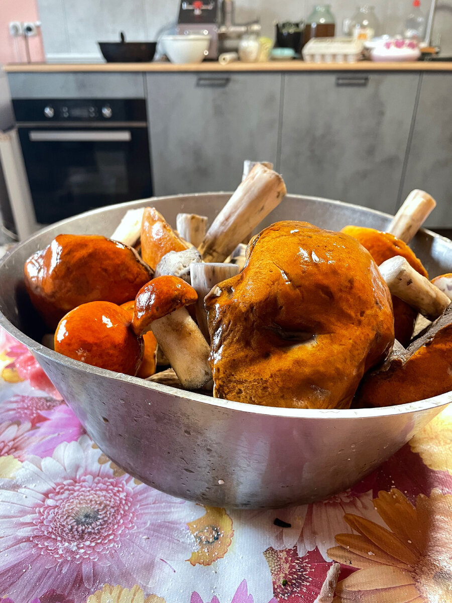 И так, вы собрали или купили подосиновики. Эти грибы обладают насыщенным вкусом, но хранятся не долго (буквально сутки) так как начинают темнеть и теряют внешний вид. Поэтому вы можете замариновать их и насладиться вкусом этих грибов, а также подавать как закуску. Рецепт маринования подосиновиков: Ингредиенты: - 500 г подосиновиков - 2 ст. ложки соли - 1 ст. ложка сахара - 1 ч. ложка черного перца горошком - 3-4 лавровых листа - 5-6 гвоздик - 1 средний лук, нарезанный колечками - 1 ч. ложка горчицы - 1 ч. ложка уксуса (по желанию) - 2 ст. ложки растительного масла - Вода Шаги приготовления: 1. Промойте подосиновики, разрежьте их на крупные куски, если они большие, отварите их минимум 40 минут. Чтобы грибы сильно не темнели, добавьте в кипяток ложку лимонной кислоты. 2. В кастрюле приготовьте рассол: добавьте соль, сахар, перец, лавровые листья, гвоздику в воду. Доведите до кипения и варите 5 минут. 3. Добавьте лук, уксус (по желанию), горчицу и растительное масло в кастрюлю с рассо
