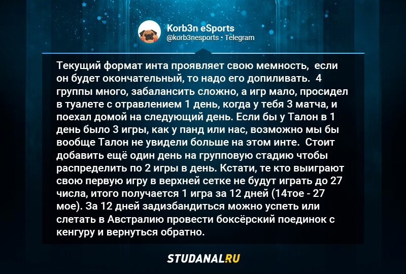 Korb3n — о формате The International 12.