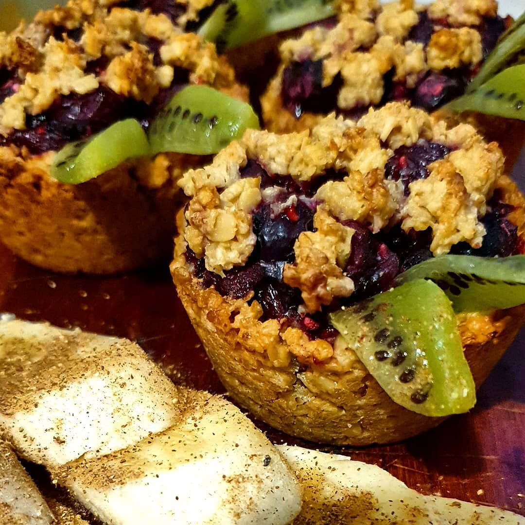 Тарталетки с ягодами🧁🍓🍒 . Обязательно попробуйте, побалуйте себя и своих домочадцев вкуснейшими полезными тарталетками. Можно сделать в одной форме - пирог. Основа получается хрустящей, начинка кисло-сладкая. 👍😋🤤 . Для коржа: . • Овсяные хлопья - 200-250гр • Масло любое (какое предпочитаете, у меня льняное) - 30гр • Подсластители - 1 ст.л. Здесь тоже выбирайте, что нравится, что хотите. Мёд, сироп, сахар🤷🏼♀️ • Горячая вода - 1-2 ст.л. . Для начинки: . • Ягоды - 300-400гр ( у меня замороженные. Вишня, смородина, клубника, малина) • Крахмал - 1 ст.л. • Подсластители - по вкусу. . 👩🏼🍳 Поехали: . ✔️Овсяные хлопья измельчить в блендере. Добавить масло и подсластитель. Перемешать и понемногу добавляем воды. Дать немного постоять. ✔️Смазать форму маслом и выкладываем массу по дну формы и бокам. Немного оставьте массы для посыпки. В духовку минут на 15 при температуре 180 С°. ✔️Пока займёмся ягодами. Ягоды разморозить. Слить лишний сок. Соединяем ягоды, крахмал и прдсластитель. А