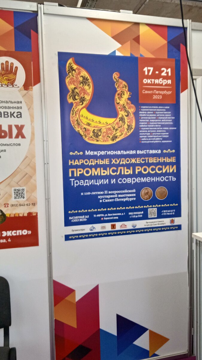 Все как-то ноги не доходили до ярмарок в новом выставочном зале около Кировского завода. Несколько странно работает - со вторника по субботу... А тут мимо шла и время было. До конца недели еще работают. На входе, естественно, народные костюмы. И самая яркая секция - из Вятки. Роспись. Яркая и праздничная. Елецкие кружева - толстые, как будто вязанные крючком, и такие мягкие на ощупь... Удивительное учебное заведение нашего города: училище народных промыслов. А это необычные работы студентов - кружево, вышивка, роспись. Студентка за работой. Плетение кружева. И не только студентка. Плетение поясов-оберегов. Выставка народного костюма. Торжок привез шитые золотой нитью сумки, кошельки и другие аксессуары. Урал - сувениры из камня и необработанные камни. И более дорогой прилавок - картины из камня и более дорогие самоцветы. Резьба по дереву из Екатеринбурга. Всего лишь шахматная доска. Кожевник, их на выставке несколько. А кроме того - сыровар, конфеты из Вологды и несколько ателье и м