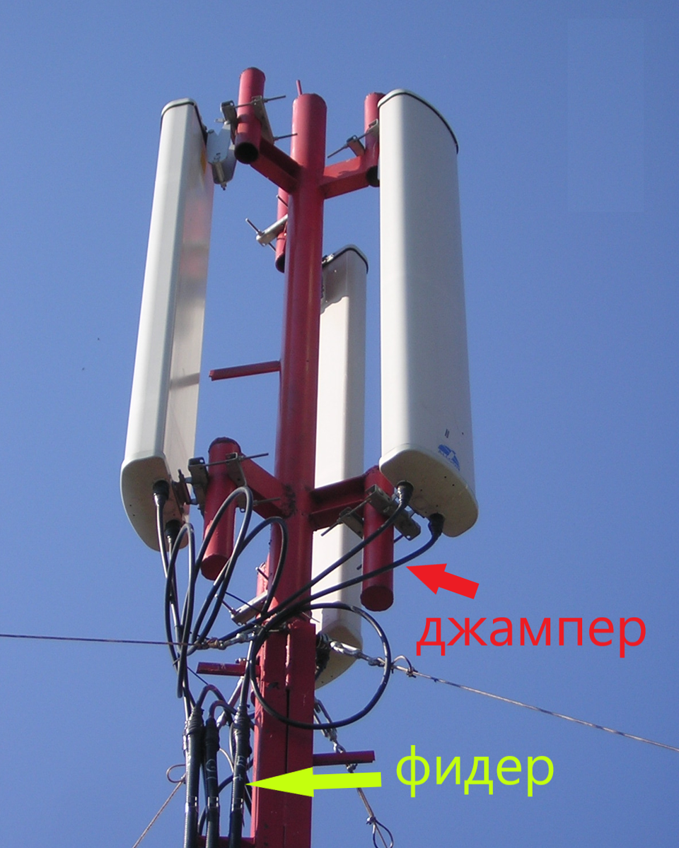 Именно для удобства монтажа и придумали джамперы - тонкие радиокабели, которые соединяли фидер с антеннами (на верху) и приёмопередатчиками (в аппаратной/контейнере). Они имеют гораздо меньший радиус изгиба, сами они легче, а разъёмы меньше, что существенно упрощает монтаж, модернизацию и обслуживание оборудования.
