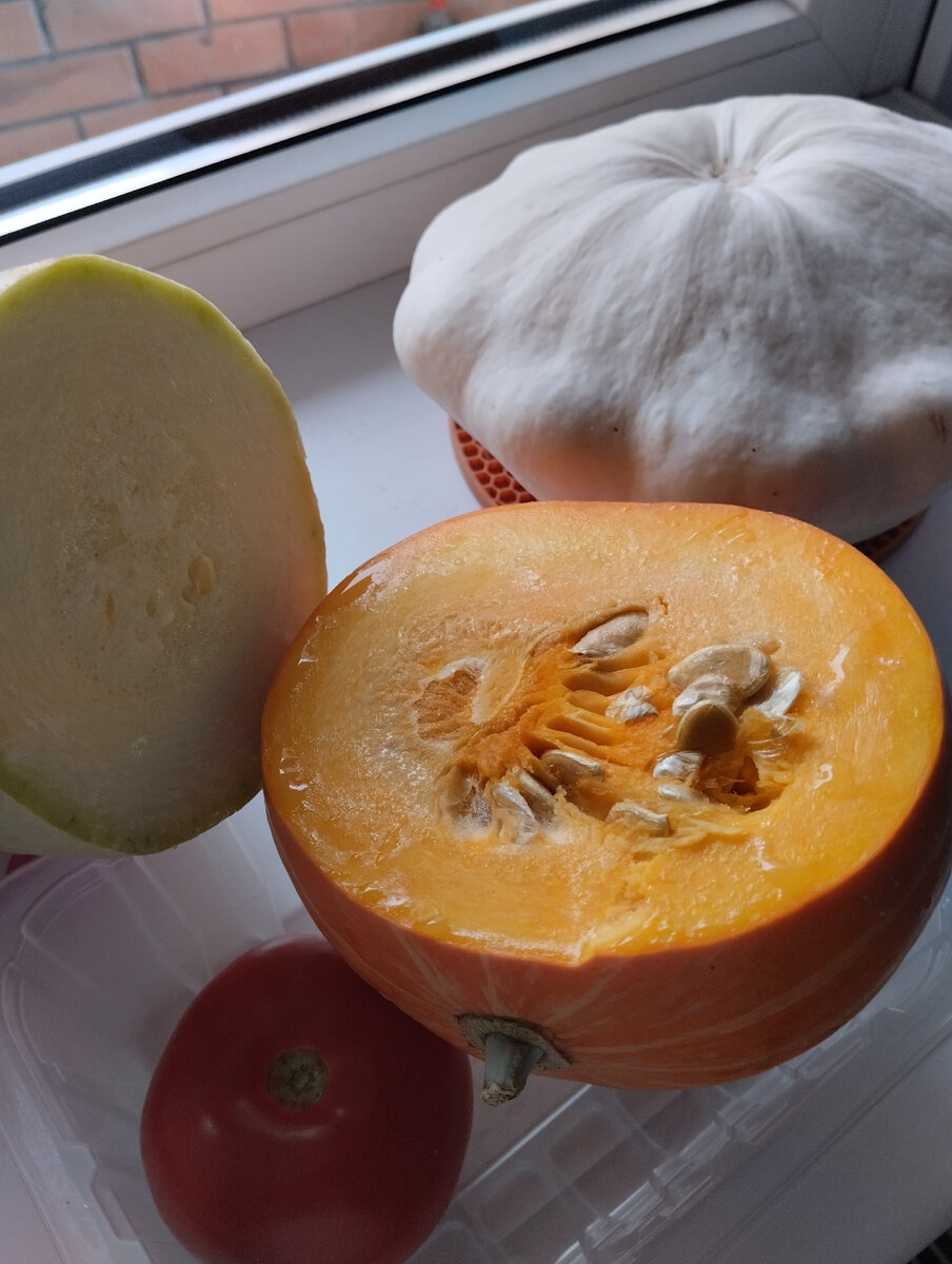 Привет, друзья! Осень диктует свой рацион из сезонных фруктов и овощей. У меня полно тыквы, потому готовлю с ней много разных блюд. Хочу вам сказать, что стараюсь использовать тыкву по максимуму, в ход идет не только мякоть и корки, но и середка тыквы, в которой расположены семечки. В некоторых странах эти середки называют "волосы феи" и используют для различных блюд. Я тоже использую, что добру пропадать? Измельчаю их, добавляю сахар и геркулес. Немного муки тоже не помешает. Перемешиваю. Можно добавить яйцо, а можно и без него обойтись.У меня тесто без яиц в этот раз. Далее можно выпекать в духовке порционно или большой лепешкой, получится печенье, а можно пожарить на сковороде- будут оладьи со вкусом мёда. Забыла сфотографировать готовый результат😊 Ешьте тыкву, друзья, это вкусно и полезно. Мои рецепты можно посмотреть в подборках=> Ваша Лейла💋