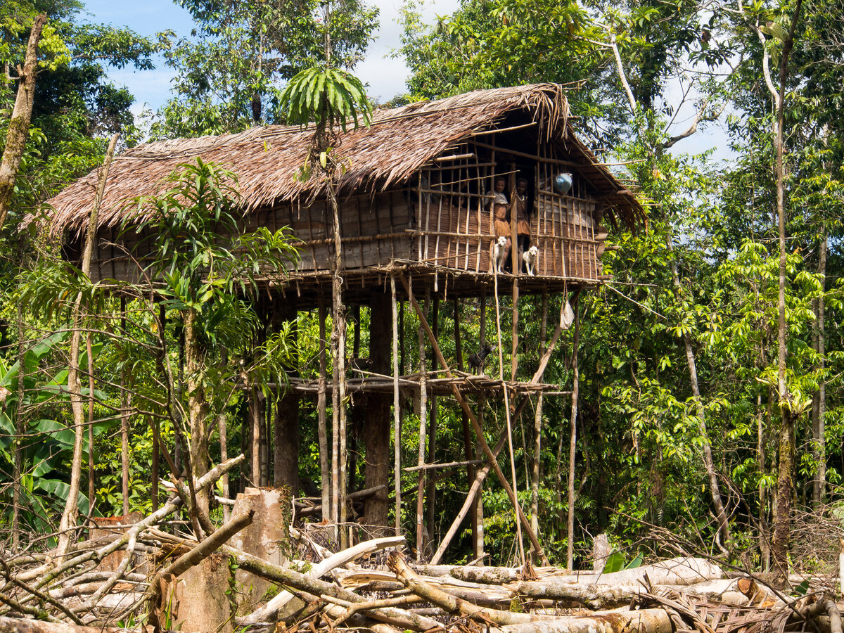 В глубинах тропических лесов Индонезии, скрытая от большинства внешнего мира, находится удивительная культурная особенность: дома на деревьях, принадлежащие племени короваи. Эта традиция строительства связана с их историей и древними убеждениями. В давние времена, когда племена мигрировали по островам архипелага, джунгли были полны опасностей: от хищных зверей до враждебных племен. Жизнь на деревьях предоставляла короваи безопасное пристанище от этих угроз. Относительно высокое положение домов позволяло им иметь стратегическое преимущество над врагами и животными. Архитектурные особенности и методы строительства Дома на деревьях короваи — это не просто жилища, поднятые над землей. Это произведения искусства и инженерной мысли, созданные с учетом окружающей среды. Основной материал для строительства — это саговое дерево, которое обладает прочностью и долговечностью, необходимыми для поддержания таких структур. Стволы саговых пальм используются в качестве фундамента, а ветви и лианы — в