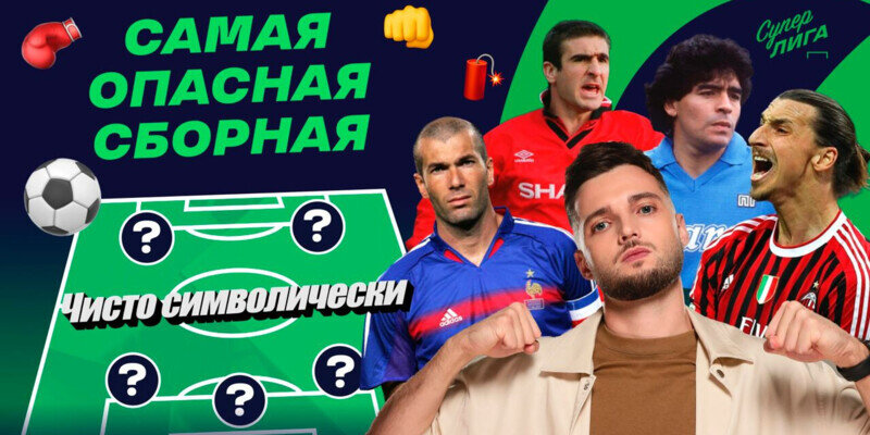 ERID| Kra23chuA «Чисто символически» — новый формат на канале «Суперлига». Амбассадор БК «Лига Ставок» Евгений Евневич составляет самые необычные футбольные команды в мире. В этом выпуске он собрал футболистов, которые любили помахать кулаками и не только. Помимо Зинедина Зидана, Златана Ибрагимовича, Диего Марадоны и Эрика Кантона, в символическую сборную попали Уэсли Снейдер, Василий Березуцкий, Александр Соболев, Дженнаро Гаттузо, Рой Кин и Винни Джонс.