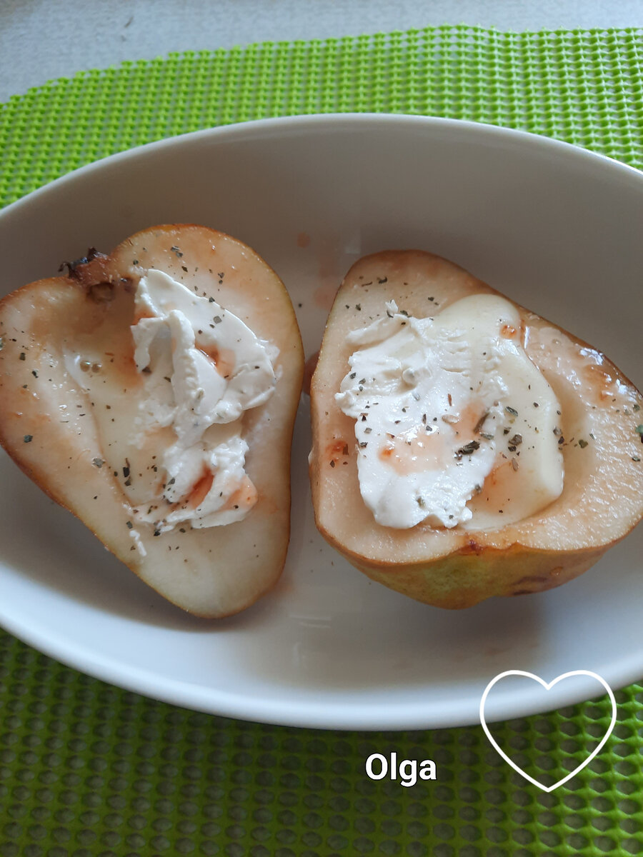 Зачем запекать грушу, если она хороша сама по себе в свежем виде?! Справедливый вопрос. Если вы ни разу не пробовали запеченую грушу с сыром дор блю! Сочетание вкусов невероятное, изысканное, неповторимое. Рецепт несложный, да и времени займет немного. Понадобится: Нужно взять груши крупные, сладкие и сочные, средней спелости. Разрезать пополам. Убрать серединку с семенами. Положить в углубление кусочки сыра. Я, кроме дор блю, добавила по кусочку сулугуни. Сверху посыпать листики тимьяна. Выложить груши в керамическую форму, застеленную пергаментом, поставить запекать в духовку. При температуре 180 град. на 20 минут. После запекания полить жидким медом.