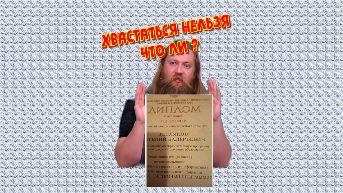 Интересно, какова теперь будет реакция тех, кто утверждал, что Евгений не имеет высшего образования. Наверняка, с лупой будут рассматривать то, что можно разглядеть в ролике и говорить: "Ну хорошо, 2 красных диплома. А зачем?"