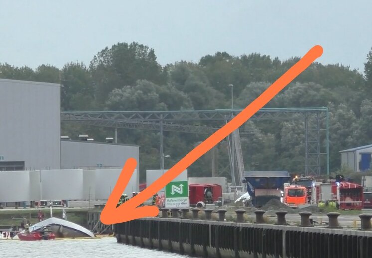 Бравые немецкие спасатели из спасательных служб пытаются максимально быстро его откачивать. Акваторию вокруг затонувшего судна отгородили спецсредствами.