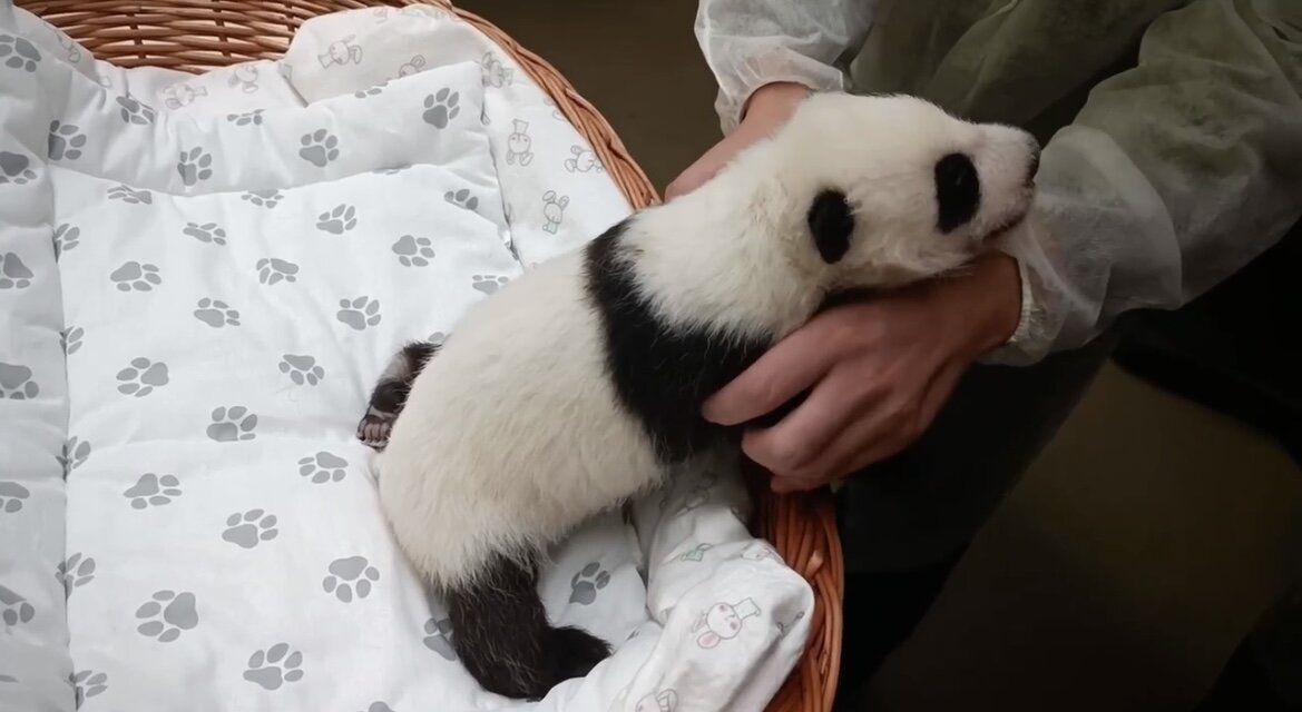 Первый родившийся в России детеныш большой панды открыл глаза