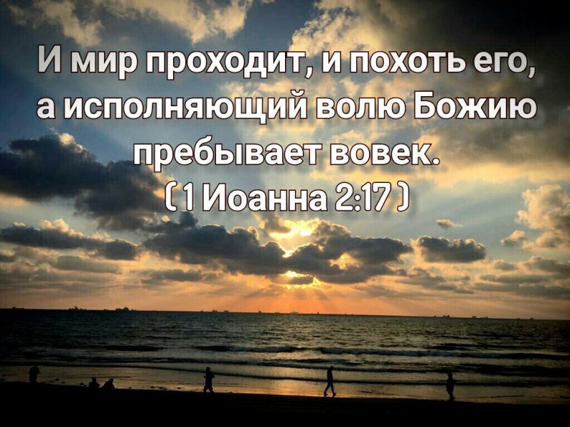 «Не любите мира, ни того, что в мире: кто любит мир, в том нет любви Отчей. Ибо всё, что в мире: похоть плоти, похоть очей и гордость житейская, — не есть от Отца, но от мира сего. И мир проходит, и похоть его, а исполняющий волю Божию пребывает вовек» (1 Ин. 2:15–17).