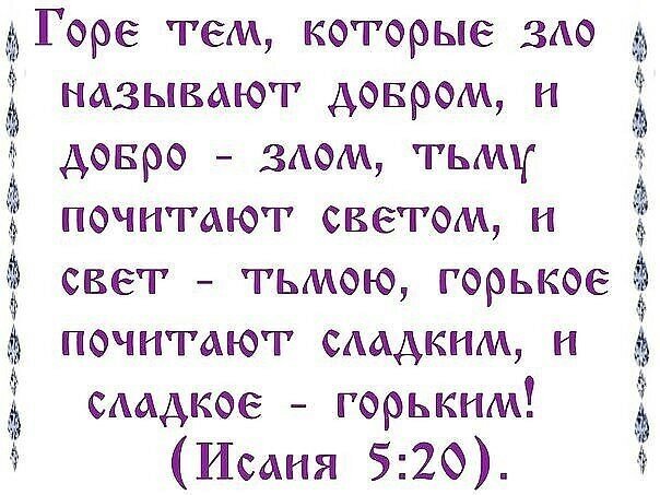 Горе тем, которые зло называют добром и добро — злом, тьму почитают светом и свет — тьмою...и каких монстров растит Россия.