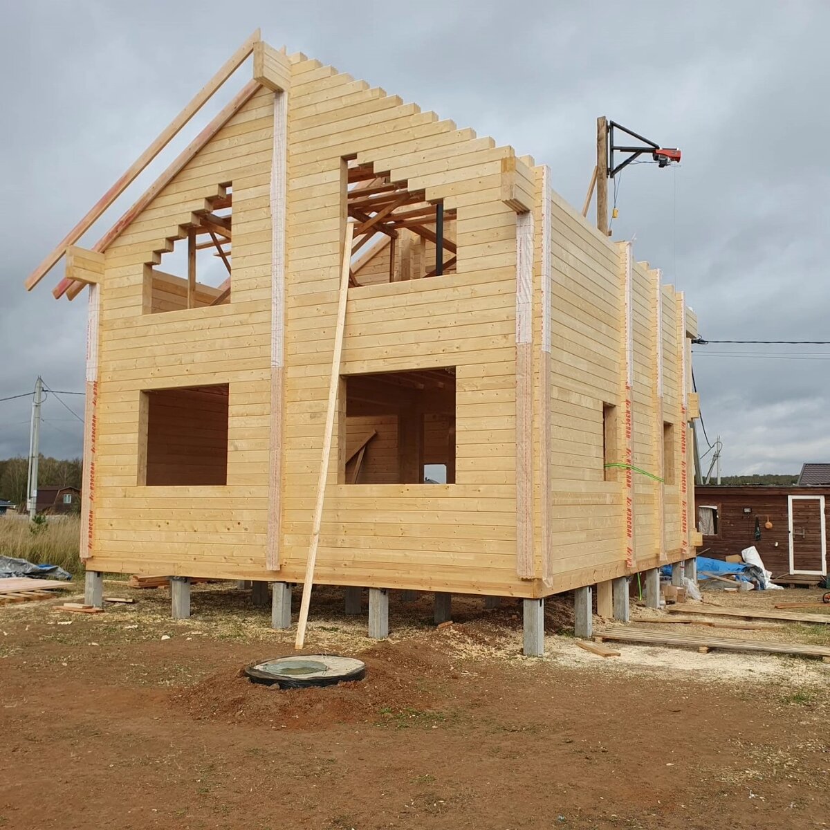 Процесс строительства жилого дома по проекту Ганновер из клееного бруса на железобетонных сваях, общая площадь 131 кв.м., габариты 8х9 По адресу: Московская область, городской округ Домодедово, КП Караваево Озеро Мы ждем вас на нашей выставке деревянных домов! По адресу: г. Москва, Каширское ш., вл63к1, дома номер: 16, 19. Бесплатная консультация. Часы работы: пн-вс с 10:00 до 20:00