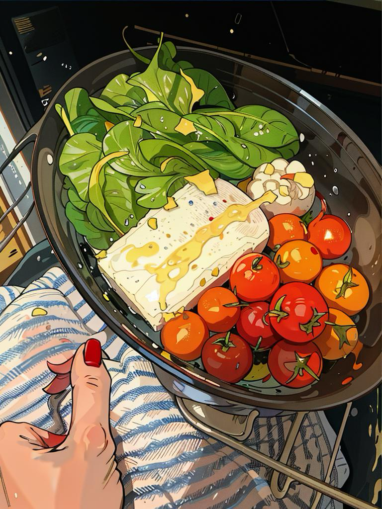 Просто ,быстро красиво и вкусно ! Рецепт: -Сыр Фетакса без рассола -Шпинат -Томаты черри -Чеснок -Брокколи -Макароны спагетти -По желанию сыр моцарелла -Оливковое масло -Соль,перец В форму кладем Фетаксу ,шпинат ,брокколи ,томаты черри ,головку чеснока ,полить сверху оливковым маслом ,посолить ,поперчить и поставить в духовку на 20 мин при 180 градусах . Сварить макароны ,переложить их в блюдо ,добавить пол стакана воды от макарон .Выдавить запеченный чеснок . Смешать с расплавленной Фетаксой . Посыпать тертым сыром . Поставить в духовку еще на 10 мин. Приятного аппетита !