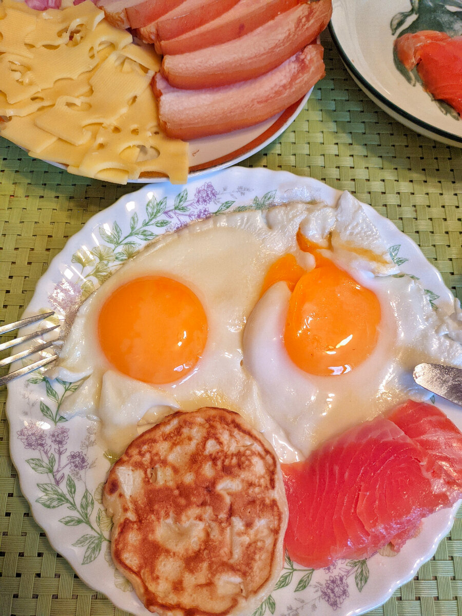1. Питание . Завтрак: - глазунья - капустные и тыквенные оладьи - шековина - Маасдам - кофе с лимоном и коричневым сахаром - коровка Откуда взялась рыбка, расскажу ниже 🙂. Обед: - куриный бульон с яйцом и кусочками курицы - Бородинский хлеб с щековиной - ленивые голубцы - маринованная капуста (на скорую руку) - компот Полдник: - творожная запеканка - хурма - клубничный йогурт 2. Что готовила. Из глобального сегодня приготовила: Ленивые голубцы . В холодильнике ещё с лета лежала капуста, а в морозилке - контейнер свиного фарша. А ещё остатки томатной пасты. Сегодня их пути встретились и в итоге у нас появилась целая сковорода ленивых голубцов - отличные обеды на 2 дня 💪. Остатки капусты нашинковала и замариновала. К обеду была готова 😋. Творожная запеканка. Первый раз готовила из мягкого творога. Получилось отлично! Узнала, кстати, о хитрости - как сделать так, чтобы у запеканки не отслаивался верхний слой и не пузырился. Оказывается, нужно всего-навсего посыпать сахаром верх