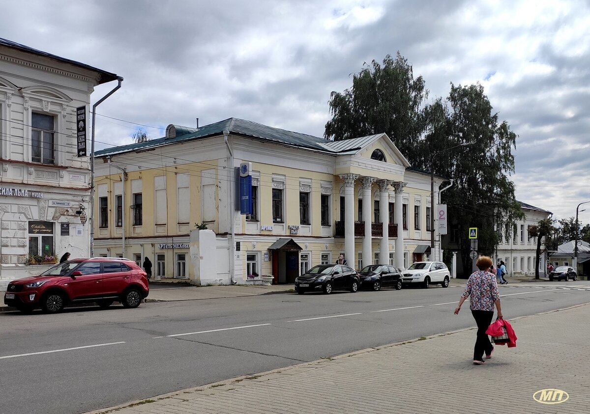 А самое первое от Сусанинской площади на улице Симановского расположено здание с колоннами, возведенное в стиле позднего классицизма. Оно было построено по инициативе костромского губернатора в начале XIX века. В нем размещался личный состав городского гарнизона и арестованные военнослужащие.