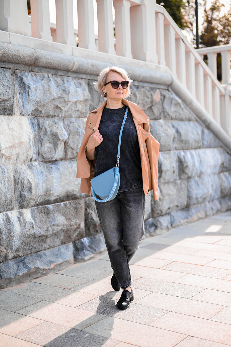 В последнее время на пике популярности практичные и комфортные образы. Я считаю, что наилучший вариант – это практичные сочетания, которые одновременно нарядны и подчеркивают индивидуальность. Чтобы выделиться из толпы в хорошем смысле, следует научиться сочетать разные элементы гардероба и создавать уникальные образы. Сегодня предложу несколько вариантов осеннего гардероба, предназначенных для разных повседневных целей, например, прогулки, свидания или работы. Первый практичный и стильный вариант, который подойдет многим женщинам: темные джинсы, светлая косуха (можно заменить например, бомбером) и акцентная сумка. Я рекомендую использовать такой повседневный и стильный образ для прогулок с друзьями или в других неформальных обстоятельствах. Вкупе с ним будет удачно смотреться любая черная или белая удобная обувь (ботинки, лоферы на низком ходу, кеды, кроссовки). Второй вариант классического образа юбка в купе с однотонным жакетом. Такая классика никогда не устареет. Однотонный жакет с