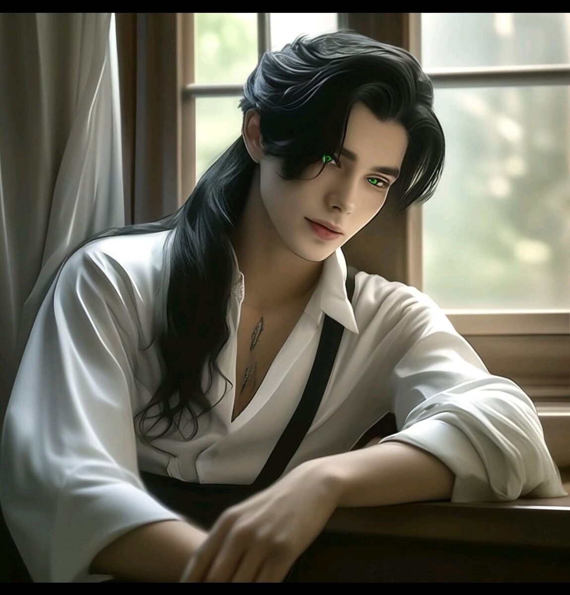 Я вздрогнула, когда по моей обнажённой ноге словно провели сосулькой, приоткрыв глаза — я подскочила. У меня на подоконнике сидел тот самый вчерашний парень.