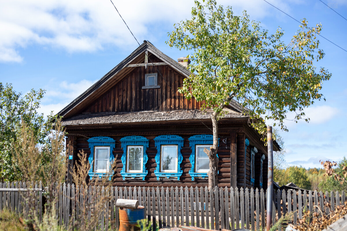 Только обрабатывая фотографии, сделанные проездом, на ходу, я обнаружила, что мы побывали в деревне домов-близнецов. Вглядитесь, на самом деле, это два разных дома: Идентичные наличники, крыша. И это: Здесь тоже одинаковая резьба, а также пристрой к избе и его украшения. Север Нижегородской области полон маленьких открытий. Воскресенский район, сентябрь.