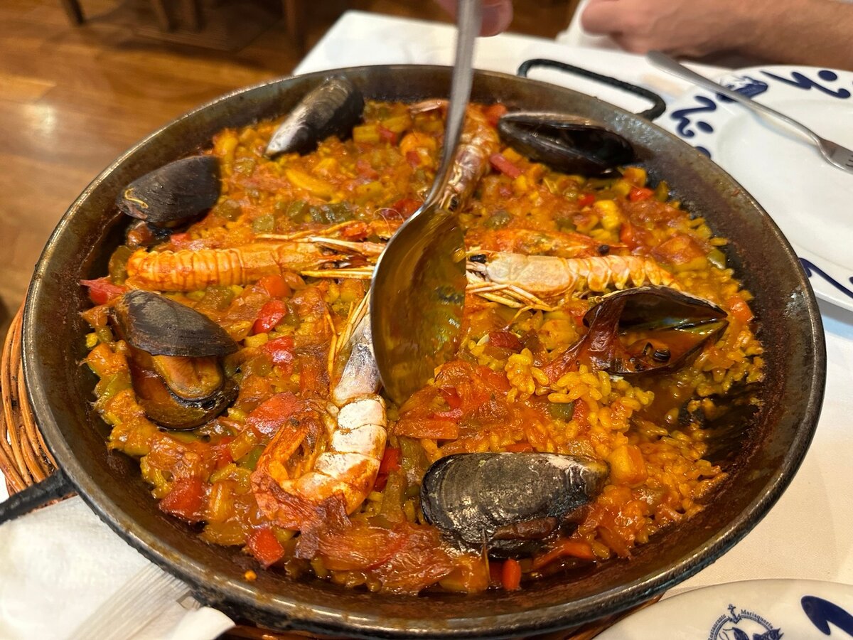 О том, как не сложилась у меня любовь с Барселоной, я уже рассказала. И огромное спасибо вам - тем, кто поддержал примерами своих "не сложилось" Сегодня - про еду. Точнее, про каталонские блюда, которые мне довелось попробовать. Блюд (и фото) не так много, так как еду я всё-таки не сильно люблю и умею фотографировать. Вообще на кухню Каталонии большое влияние оказало географическое положение и соседи - первые поселенцы старались использовать те ресурсы, которые им давала природа. Пищу готовили из пшена, могара, бобовых, нелущеного ячменя, в рацион включали баранину, свинину, конину, рыбу и фрукты. Потому и сейчас блюда сытные и достаточно жирные. Самое известное из того, что я ела - это, пожалуй, паэлья. Классическая, традиционная - именно с морепродуктами. Жирная, огромные порции (везде и всегда, готовится сразу на нескольких - в нашем случае - на двоих) Я не могу сказать, что я фанат всех морепродуктов: что-то ем, что-то нет. В случае с паэльей, конечно, съела )) Общее впечатление: ж