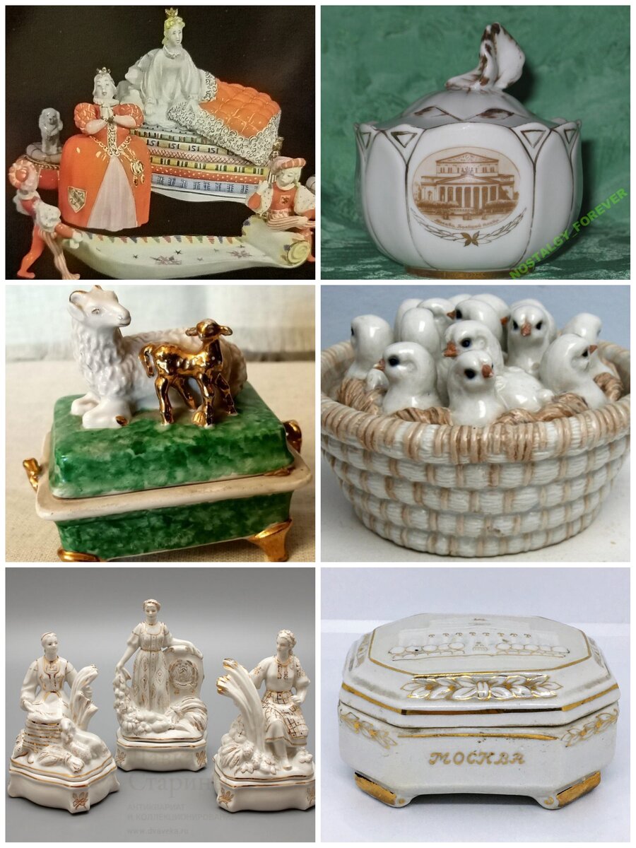 Пятидесятые годы были расцветом Дулевского фарфорового завода, в это время скульпторы и художники активно работали над декоративной скульптурой, которая получила выражение и в более утилитарных предметах, таких как шкатулки и туалетные наборы.
