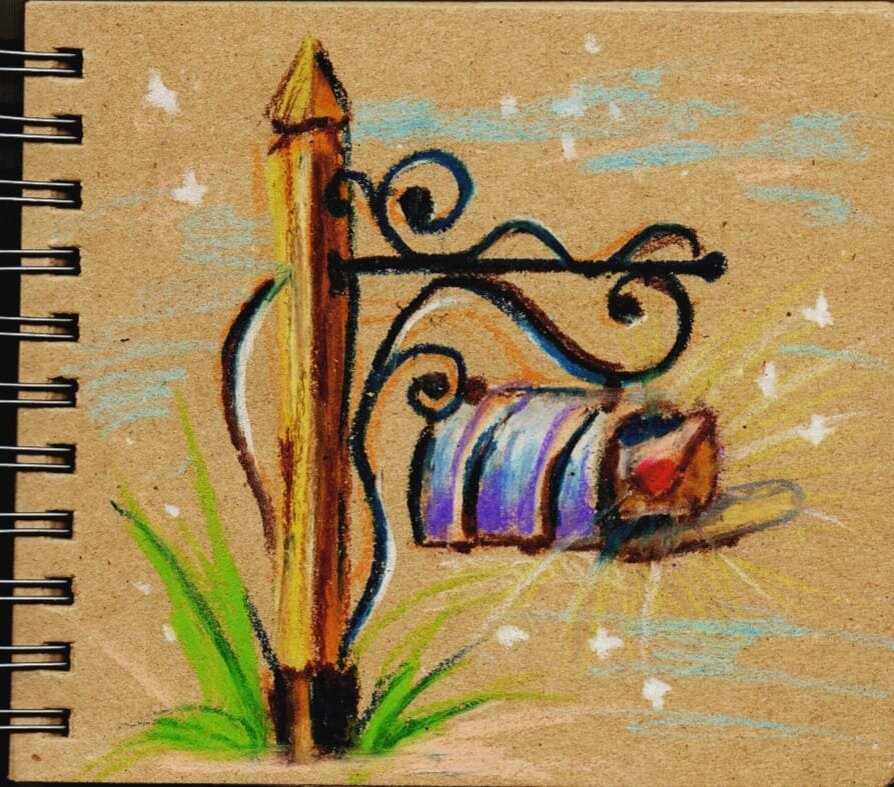 По мановению руки на столе тут же оказались: пергамент, чернила, пара кистей и голубенький конвертик из плотной бумаги