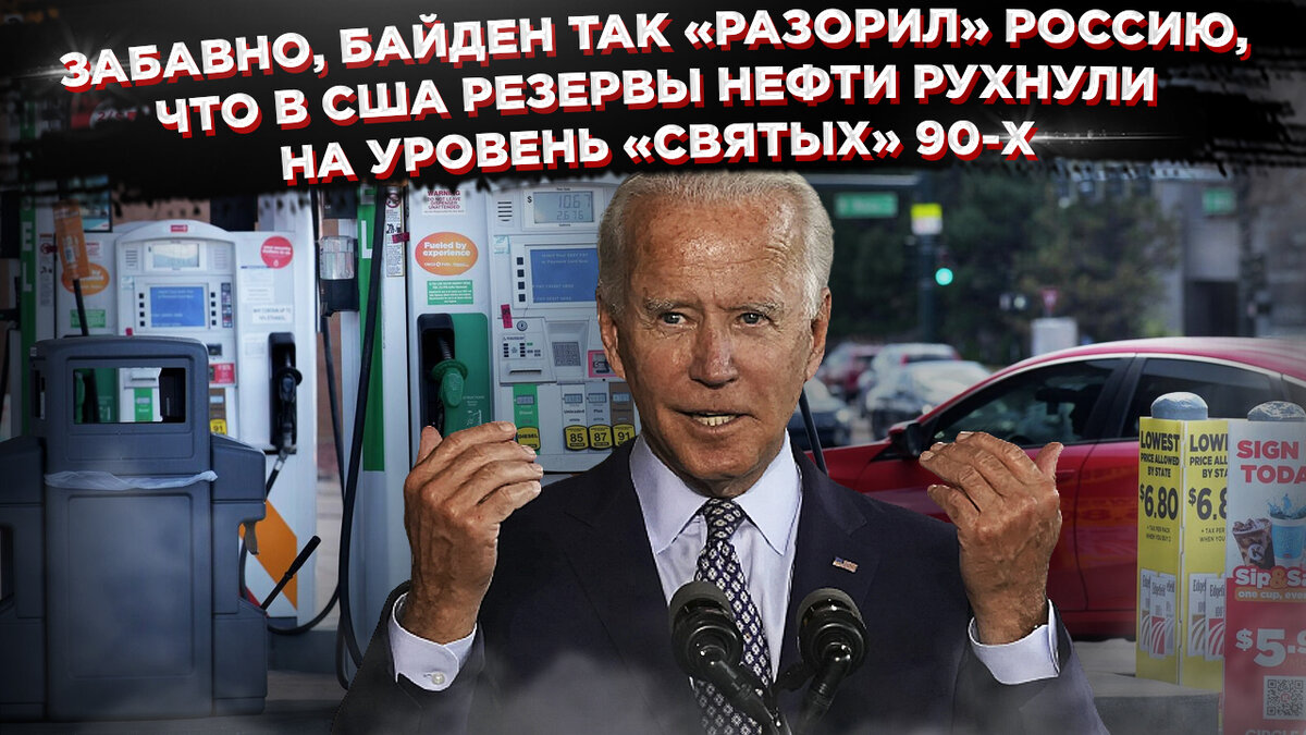 (В США растут проблемы, которые они, в теории, пророчили России. Растут цены на бензин, экономика хромает, а теперь еще и запасы нефти стали минимальными со времен падения СССР) Какая прелесть – при мудром, бодром и великом президенте Джо Байдене стратегические запасы нефти в США обвалились до катастрофических минимумов. Если точно – в запасе у Штатов заначка есть только на 17 дней. Такого не было с начала 90-х! А что было в те годы, по которым нежно скучает Ксения Анатольевна Собчак? А правильно, развалился СССР и тут у Сияющего Града на Холме, как говорится, поперло. Причем, многие уже просто не помнят, но в конце 20 века у Штатов проблем хватало и фактически тогда СССР не дотянул совсем чуть-чуть. Поэтому, к слову, Билла Клинтона и любят, дескать, он сотворил экономическое чудо. Ну, как сотворил, банально пришел в нужный момент, когда из России после поражения в той геополитической битве – качали все подряд и очень дешево. Да и не только из России. Отсюда и бензин в Штатах стал тогд