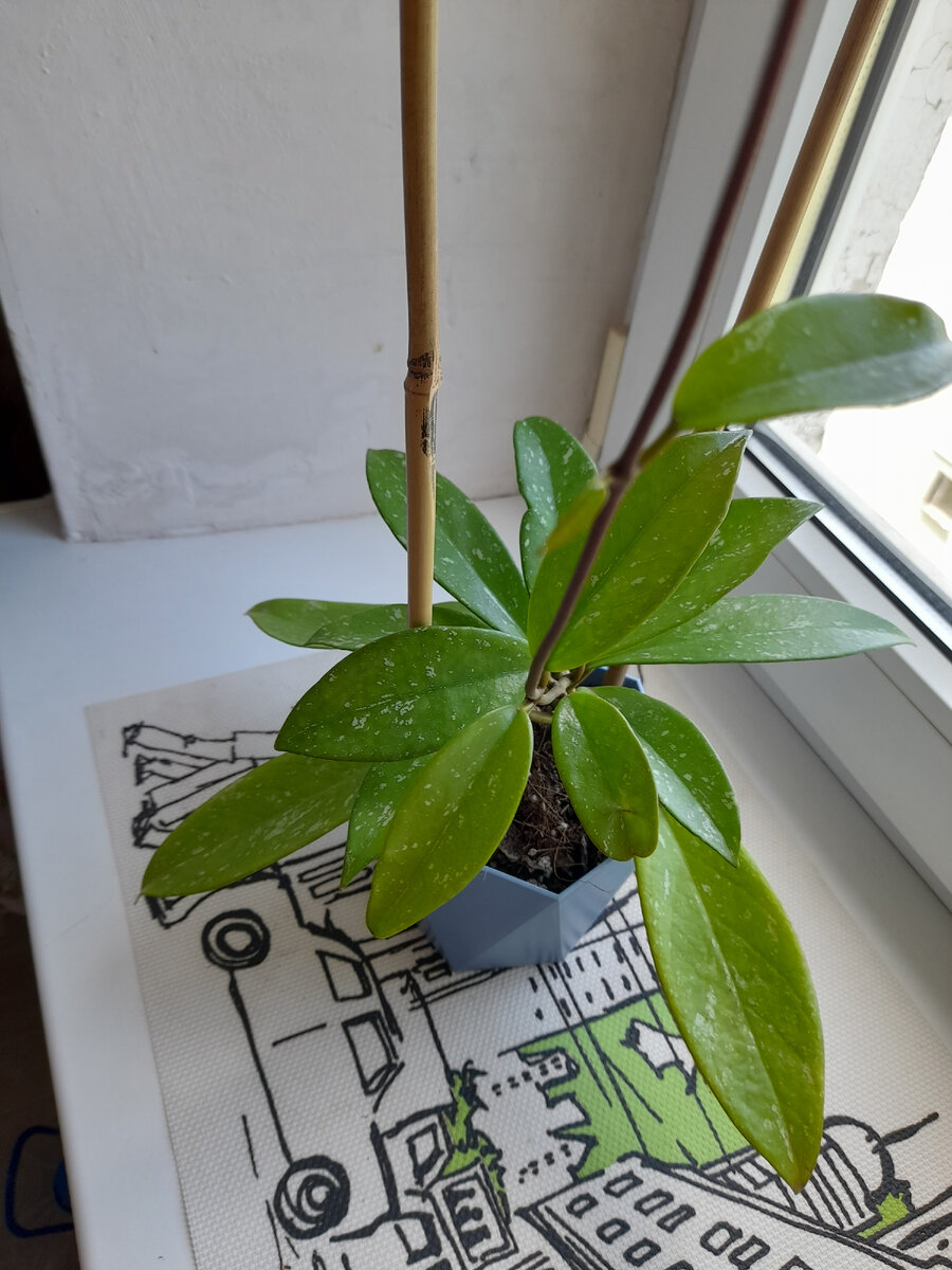 Пубикаликс, как я уже сказала, никогда особо не доставляла мне проблем, пару раз я даже заливала её, но она терпела, росла дальше. Причём растёт она быстро, к году это был уже немаленький такой куст. Корневая у неё тоже растёт довольно быстро, поэтому пересаживать её придётся чаще, чем другие хойи, по крайней мере на первом году жизни. В стаканчике такая лошадка у Вас долго не просидит. К году я пересаживала её дважды, из стакана в горшок 0,4 и потом в горшок 0,7. В нем и оставила, больше ёмкость не увеличивала, только меняла грунт и сажала в тот же горшок.