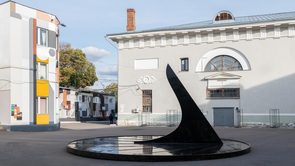Инсталляция «Солнечные часы» художника Владимира Чернышева была создана в рамках ежегодного фестиваля современного искусства «Здесь и сейчас», который проводит парк «Зарядье» Провал в безвременье — такая метафора легла в основу концепции нового арт-объекта Владимира Чернышева, который в рамках фестиваля парка «Зарядье» «Здесь и сейчас» был установлен во дворе Музея Москвы. Инсталляция представляет собой солнечные часы, которые на сегодняшний день являются самыми большими в России. «Мы не ставили задачу побить рекорд, это случайно вышло, — рассказывает куратор фестиваля Анна Малик-Короленкова. — В Книгу рекордов Гиннесса входили мозаичные часы из Светлогорска, но недавно их разобрали и отправили в Калининград на реставрацию. Так что самыми большими оказались наши, диаметр циферблата — 9 метров». Циферблат выполнен из гудрона — материала, который ассоциируется с поглощением и текучестью и придает основанию часов сходство с черной дырой с выплывающим из нее гномоном. Минималистичные худож